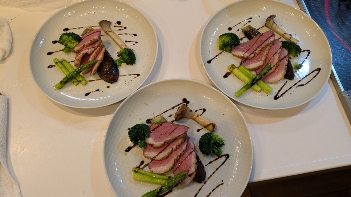 爽やかな風味のカルパッチョ、リクエストした鴨のロースト、いずれも家庭では作れないプロの味で満足しました。